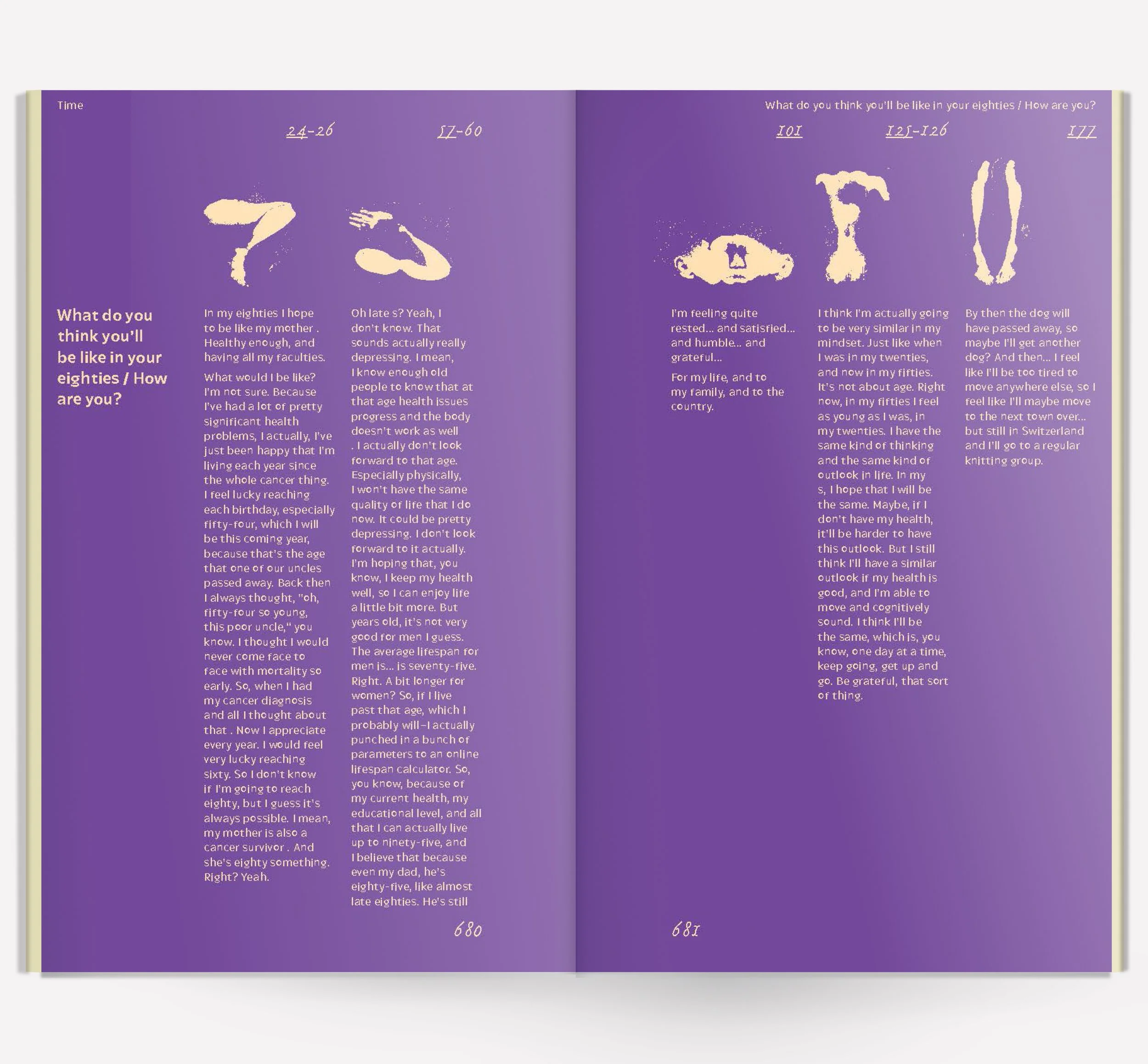 In "Individuals" each section is dedicated to a family member, where they discuss their perspectives on kinship in relation to time, space, and their bodies.