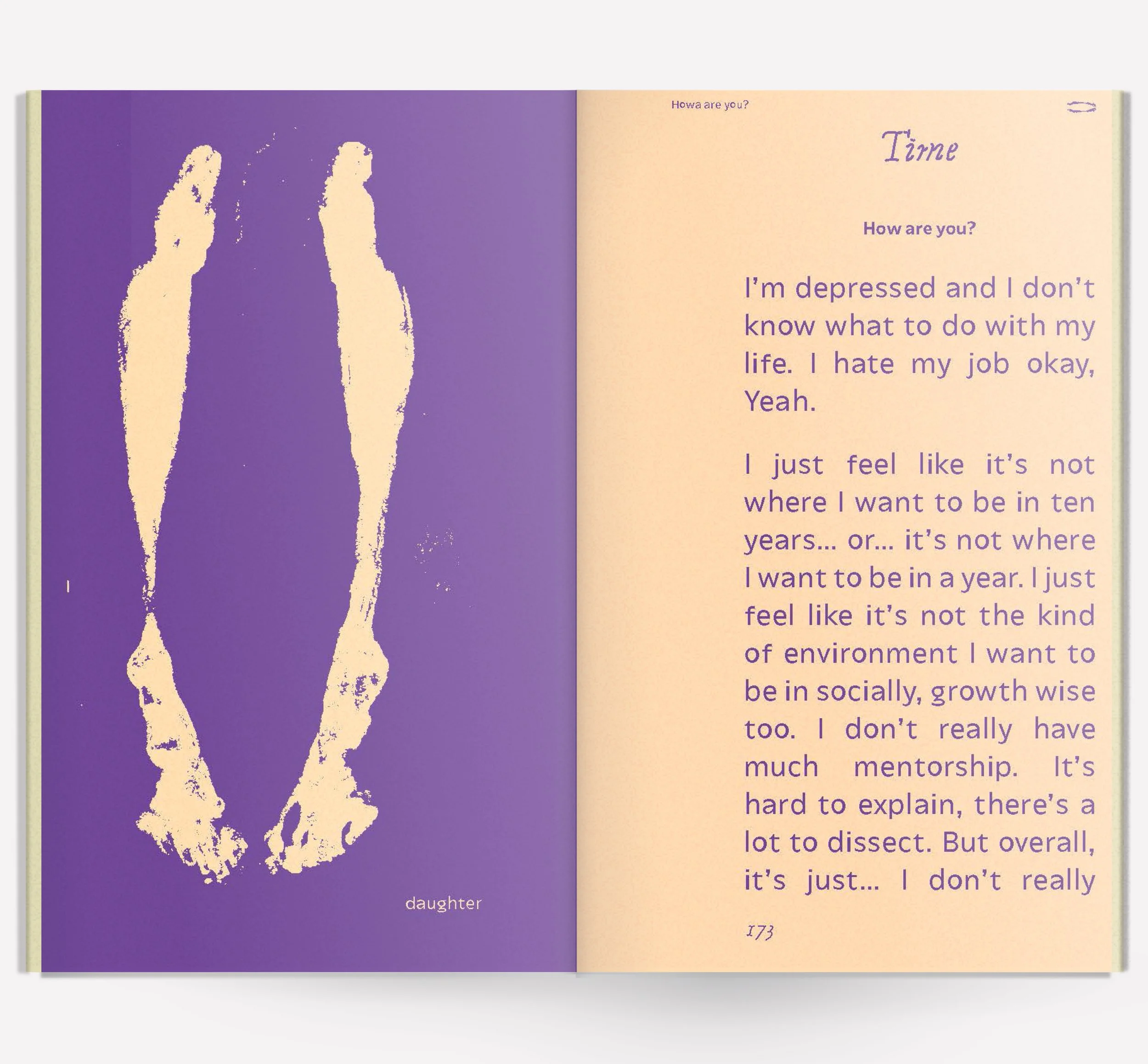 kinship is a book that holds the transcripts of five interviews I had with five of my family members. In these interviews I asked each person the same set of questions about their memories and conceptions of family, blood relations, and each other.